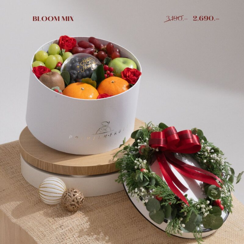 ช่วงนี้คงไม่มีอะไรเหมาะมากไปกว่าการจัดพร็อบสีแดงอย่างเช่น ดอกกุหลาบ ก้านเบอร์รี่ และยังมีตัวตกแต่งที่เกี่ยวข้องกับ Theme คริสมาสต์ ที่เอามาเติมเข้าไปในเซ็ทผลไม้ ให้ความ Festive ตามช่วงเทศการเฉลิมฉลอง ช่วงปีใหม่ ส่งความสุขให้กับคนที่รัก