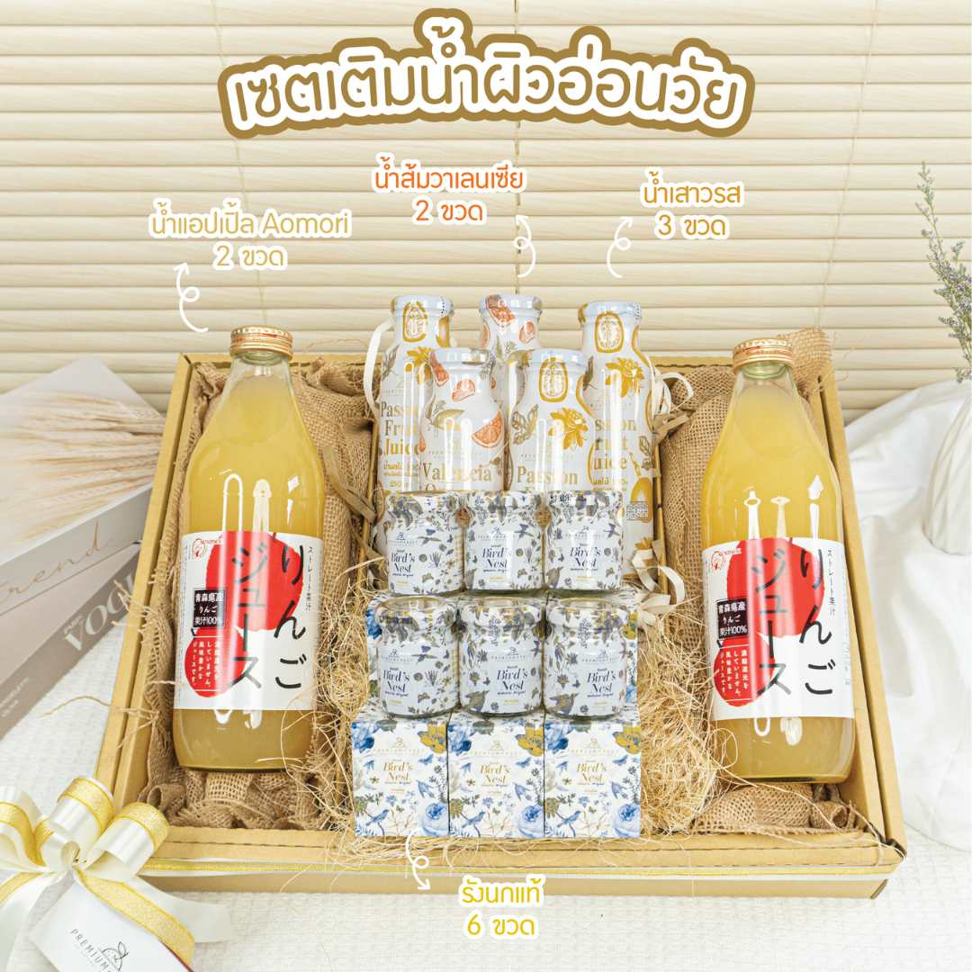 ชุดน้ำผลไม้คู่รังนกของ Premium Fruit จัดทำขึ้นเพื่อให้คุณได้ส่งมอบสิ่งดีๆกับให้ผู้ใหญ่ หรือกลุ่มลูกค้าคนสำคัญของคุณ โดยมีตั้งแต่ขนาดกลางถึงขนาดใหญ่ จะเน้นการจัดอย่างสวยงาม ปราณีต เน้นความเรียบง่ายแต่ดูดี